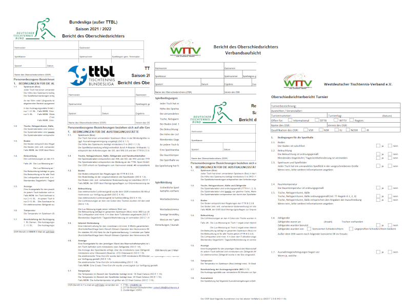 Im WTTV ist der VSRO nicht der Empfänger von OSR Berichten, auch wenn einige Formulare vom DTTB und von TTBL es in der Fußzeile ausgeben. Die OSR Berichte aus den Einsätzen in der TTBL sind bezirksunabhängig zu senden an: