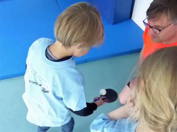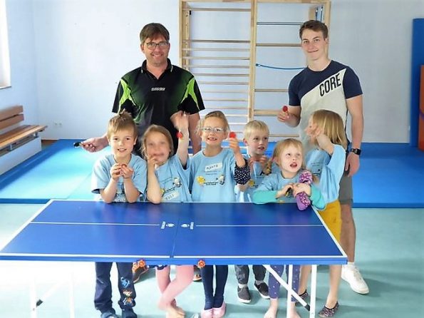 In Kooperation mit der Tischtennis-Abteilung der TUS Helpup fand im Mai ein Tischtennis-Schnupperkurs für die zukünftigen Schulkinder im Familienzentrum „Kita Greste“ statt. Dort konnten erste Erfahrungen beim Tischtennis gesammelt werden. Bevor es ans Ausprobieren von Tischtennisschlägern und einer Mini-Tischtennisplatte ging, haben sich die Kinder und Trainer gemeinsam aufgewärmt, spielerisch Koordinationsübungen gemacht und Bälle balanciert. Dies ist nämlich wichtig für das Spielen beim Tischtennis. Dann konnte es endlich losgehen: das Erproben an der Tischtennisplatte mit Tischtennisschlägern.