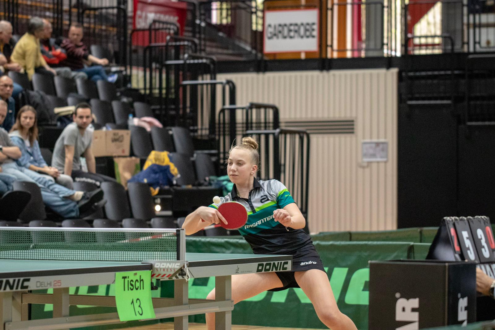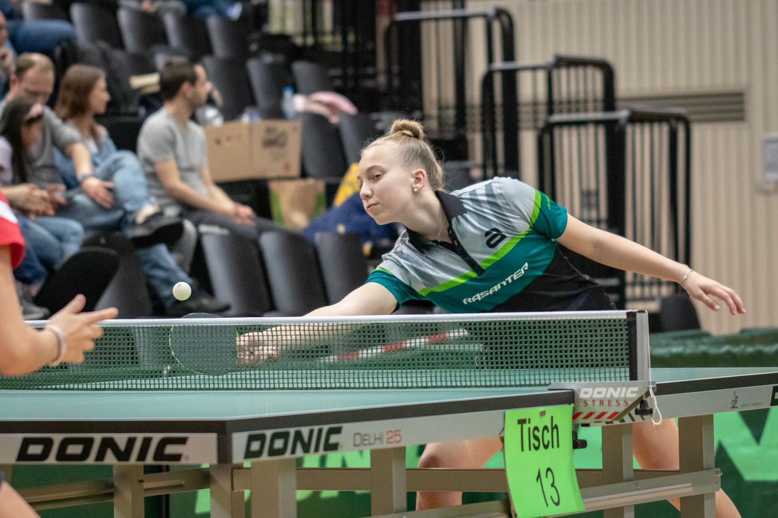 Im Spiel um Platz drei bringt Leonie Berger die Mannschaft mit einem Sieg gegen Steenbuck in Führung. Anni Zhan unterliegt dann leider Karina Pankunin mit 3:1 und Mara Lamhardt verliert mit 9:11 im Entscheidungssatz gegen Weber. Berger/Schönau können dann wieder ausgleichen. Berger verliert dann 3:0 gegen Pankunin, Mara Lamhardt kann mit 3:2 gegen Steenbuck punkten. Und in der entscheidenden Partie, beim Spielstand von 3:3, spielten Zhan gegen Weber. Anni hat alles gegeben, aber leider hat es am Ende nicht gereicht.