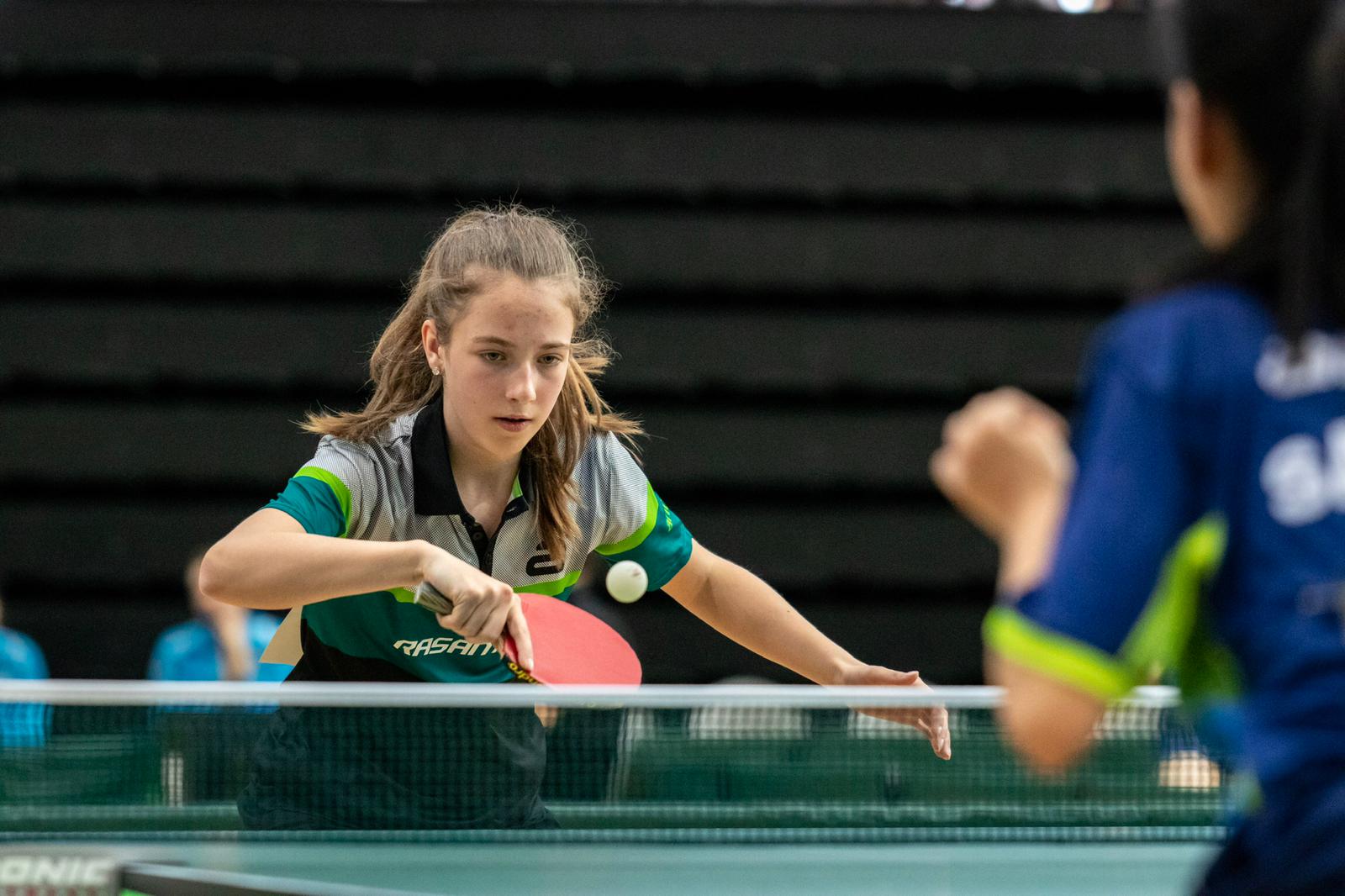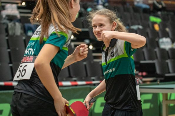 Dort ging es dann gegen die Auswahl aus Hessen, die später auch das Turnier gewinnen konnte. Leonie Berger, die gesundheitlich etwas angeschlagen war, kam im Einzel nicht zum Einsatz. Die Mädchen haben aber gegen Sophia Klee, Anastasia Bondareva und Ayumu Tsutsui gute Chancen gehabt. Auch das Doppel von Berger/Schönau gegen Klee/Bondareva ging denkbar knapp verloren. Leider war es eine 0:4-Niederlage.