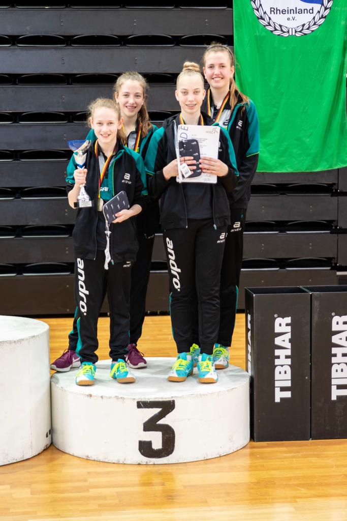Das Schülerinnen-Team setzte sich aus Charlotte Schönau (TTC Mariaweiler), Hannah Pollmeier, Melinda Maiwald (beide TTV Hövelhof) und Luisa Düchting (TTG Langenich) zusammen und holte den dritten Platz.