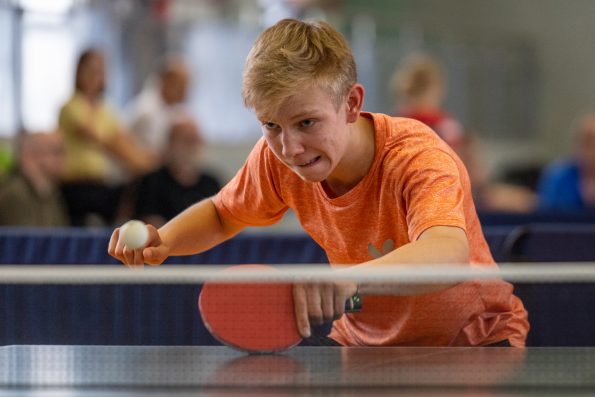 Als Sieger verließ Sebastian Lenz, erst 10 Jahre altes Tischtennis-Talent des TuS Hiltrup, die Sporthalle Hahler Feld bei den Jungen 13. Die ersten fünf Einzel gewann der wieselflinke Rechtshänder alle mit 3:0 Sätzen, ab dem Halbfinale wurde es dann ein wenig spannender. Im Halbfinale konnte sich Sebastian gegen Matthias Jax (Borussia Düsseldorf) in vier Sätzen durchsetzen. Im Finale standen sich Sebastian Lenz und Dorian Lheriau, ein weiterer Düsseldorfer, gegenüber. In einem Spiel mit vielen langen und umkämpften Ballwechseln konnte Sebastian im vierten Satz den Sack zu machen und den Turniersieg einfahren.
