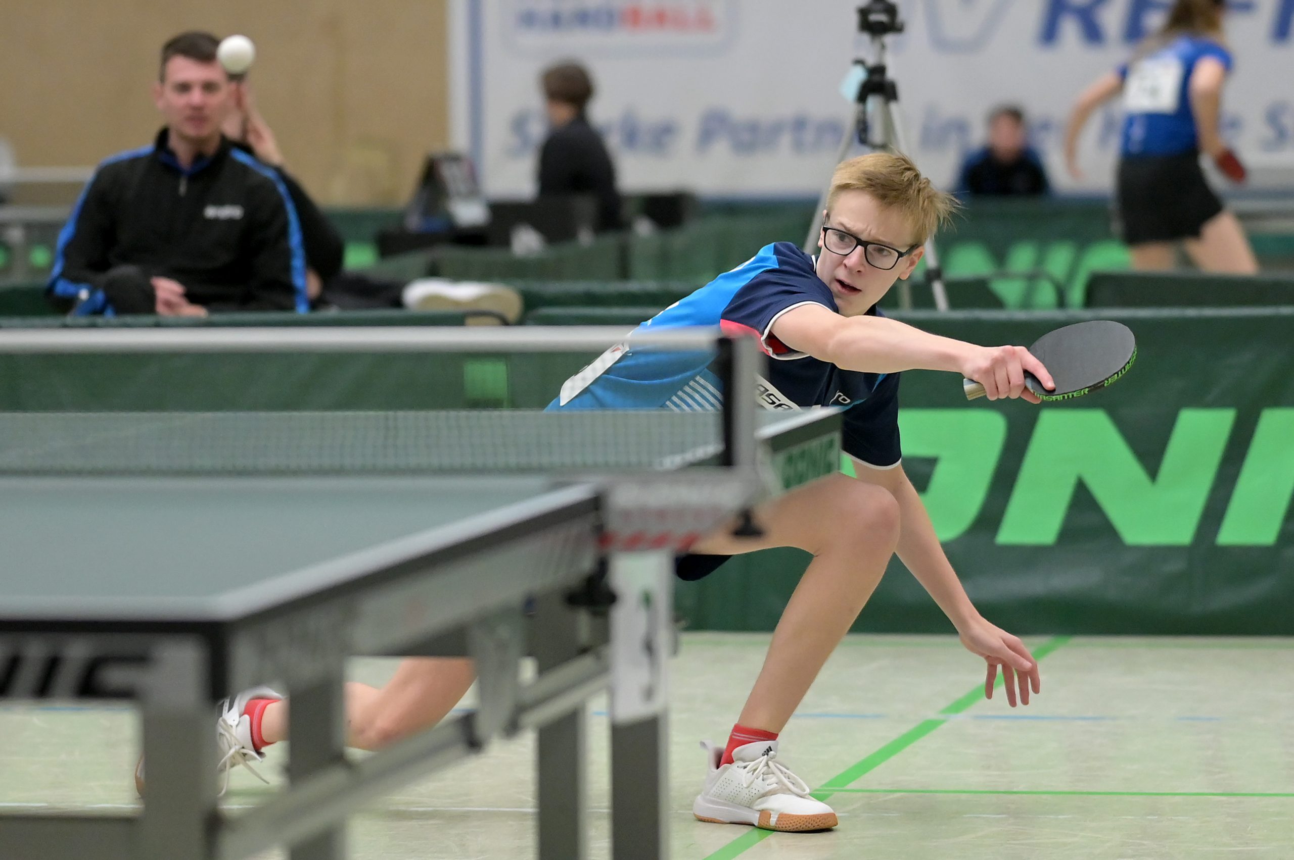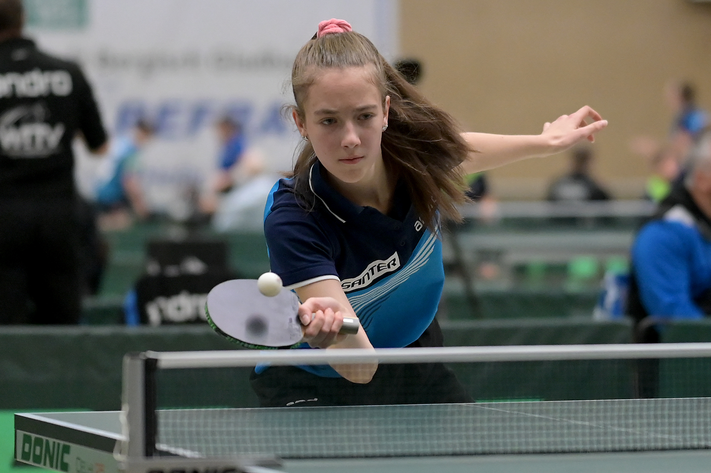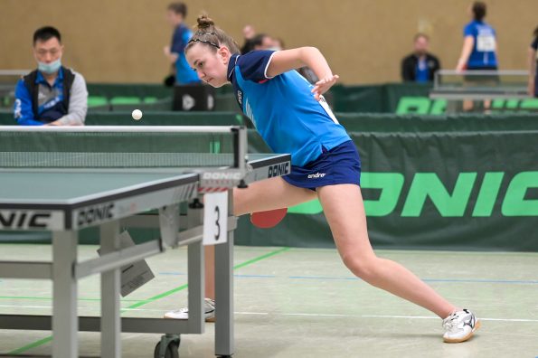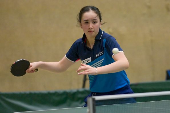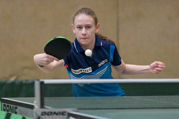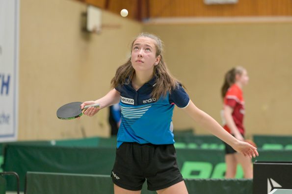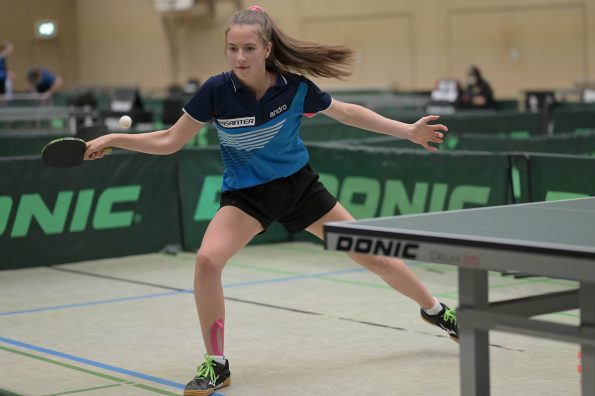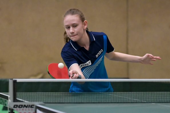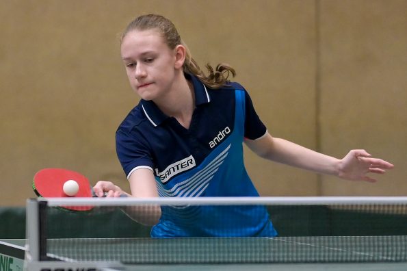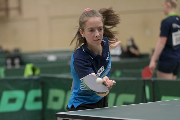 In der Mädchen 18 Konkurrenz legte Felina Busch am zweiten Turniertag einen vielleicht schon „sensationellen“ Auftritt hin. Nachdem sie in der Gruppe mit 2:3 Spielen Platz vier belegte, drehte die Linkshänderin am Sonntag so richtig auf, besiegte zuerst in einem hoch spannenden Match Braatsch (TTVSH) mit 3:2 und danach die favorisierte Sarah Rau aus Hessen ganz deutlich mit 3:0. Damit landete Felina am Ende auf einem tollen Platz 5 bis 8, was die Teilnahme am Top 12 bedeutet. Für Melinda Maiwald lief es genau umgekehrt. Am Samstag musste sie sich in der Gruppe nur einmal geschlagen geben, welche sie dann auf Platz zwei beendete. Sonntag lief es dann für Melinda nicht mehr ganz „rund“, sie musste trotz großem Kampfgeist leider vier Niederlagen kassieren, was am Ende Platz 12 bedeutete.