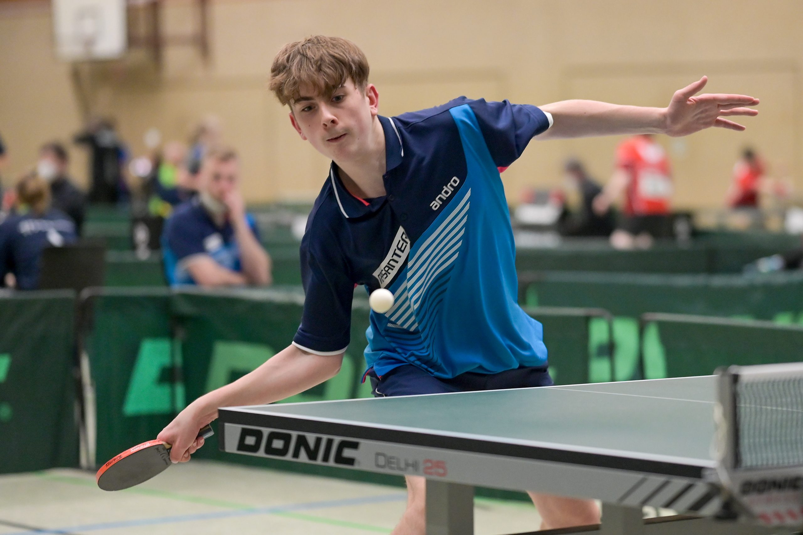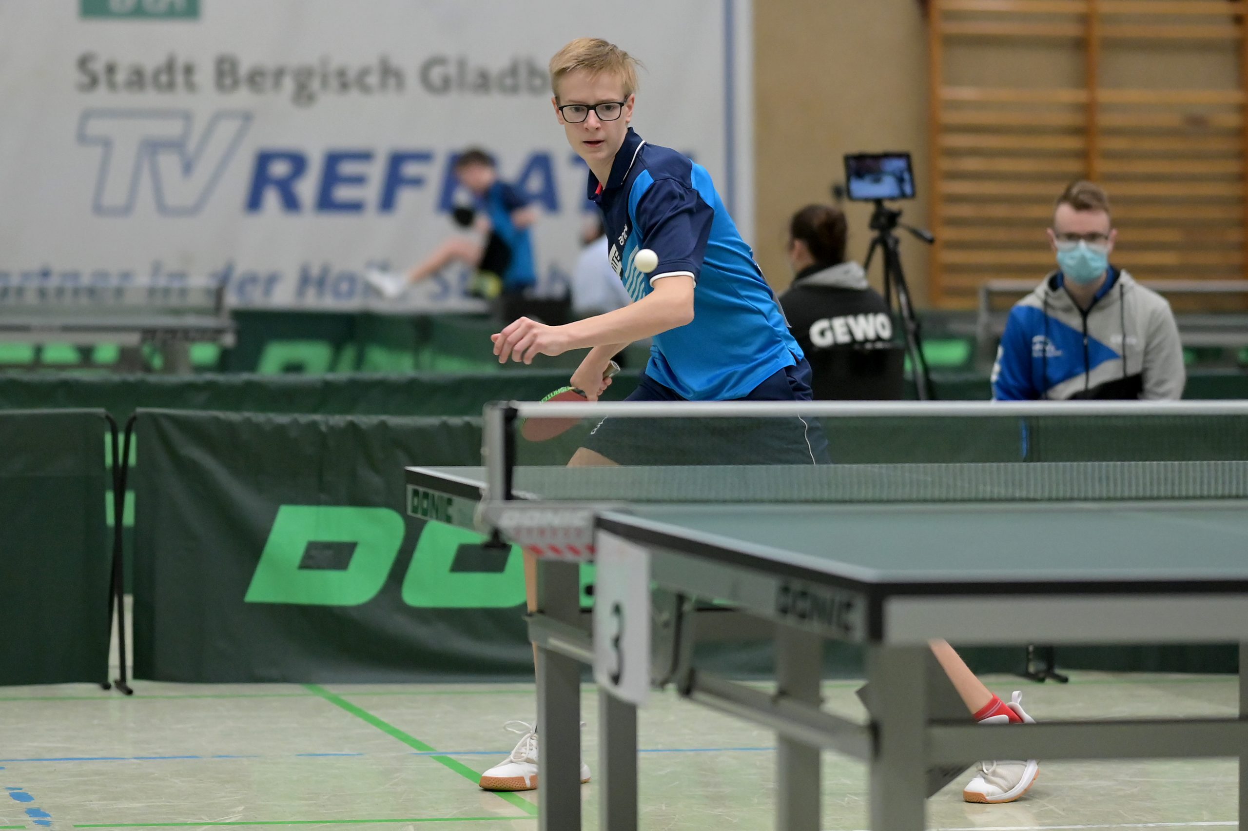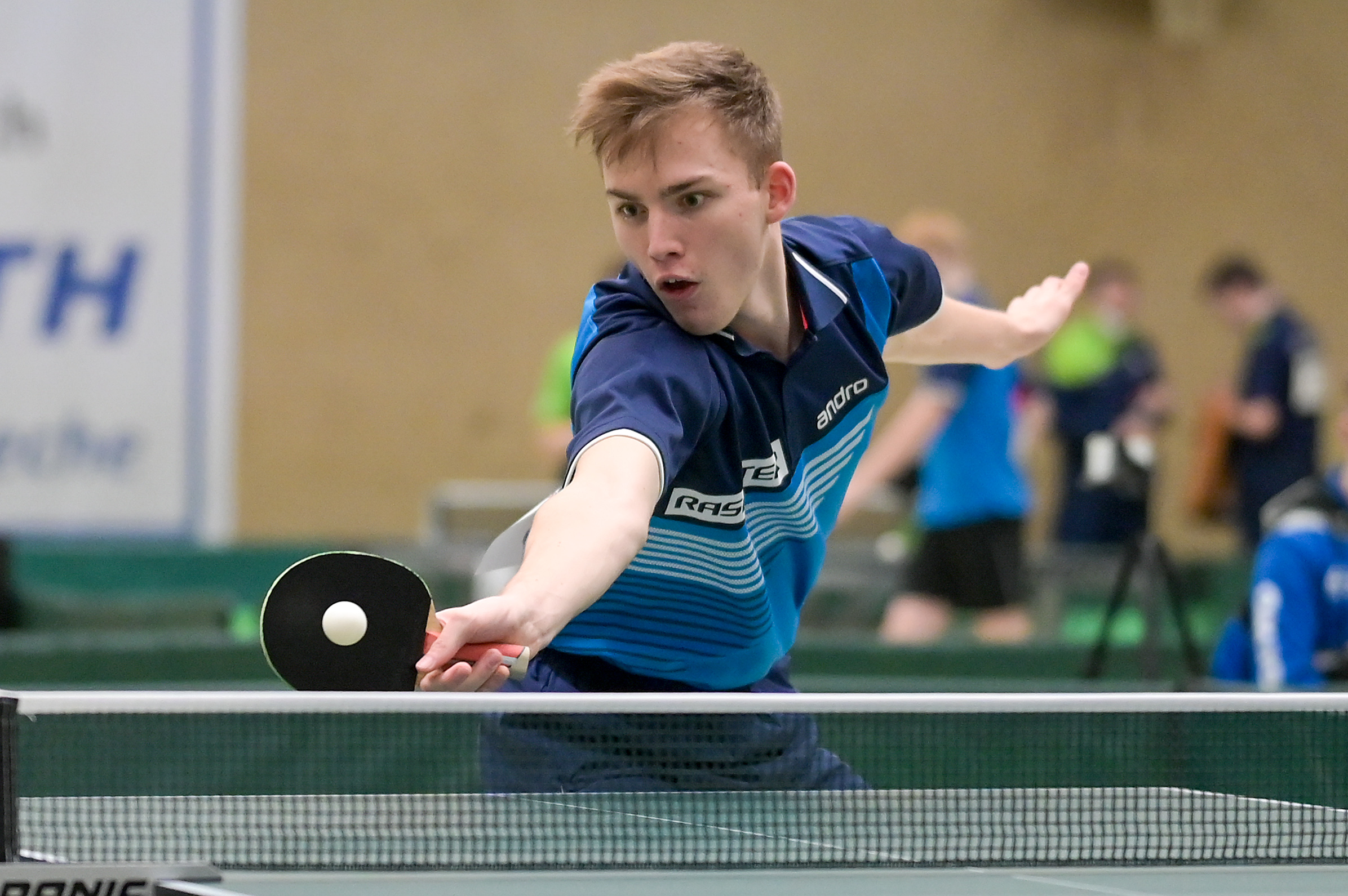 Bei den Jungen 18 belegte Andre Bertelsmeier mit einer souveränen 5:0-Bilanz in der Gruppe Platz eins. In der Ko-Runde ging es dann gegen Karl Zimmermann aus Sachsen um den Einzug ins Halbfinale. Hier musste sich Andre nach großem Kampf knapp mit 2:3 geschlagen geben. Durch das anschließende 3:0 gegen Felix Köhler (PTTV) holte er sich aber die Platzierung 5-8 und damit das Ticket zum Top 12. Ebenso wie Wim Verdonschot, der nach seinem dritten Platz in der Gruppe die beiden nächsten Partien gegen Itagaki (BYTTV) und Senkbeil (TTVN) gewinnen könnte.
