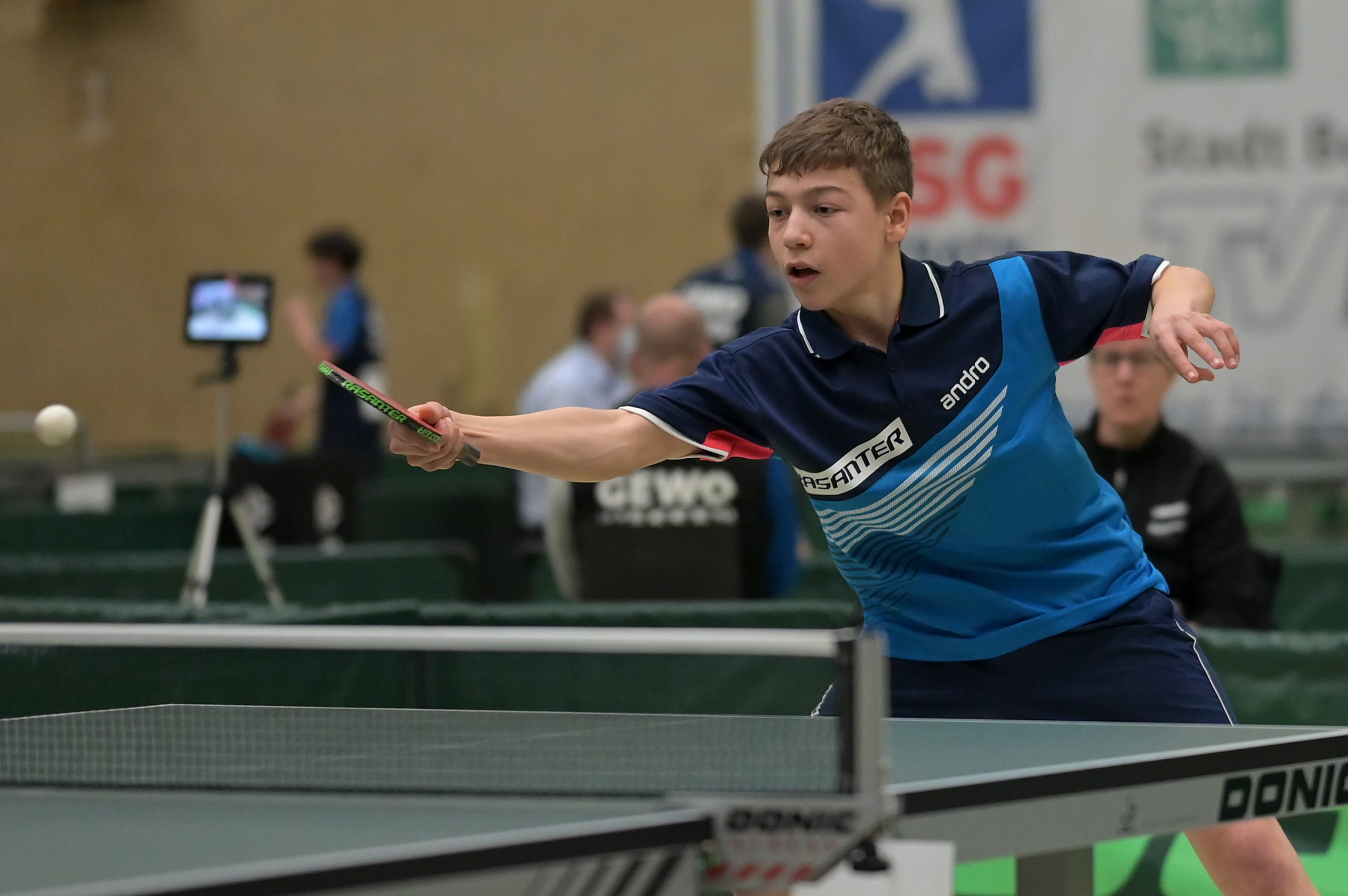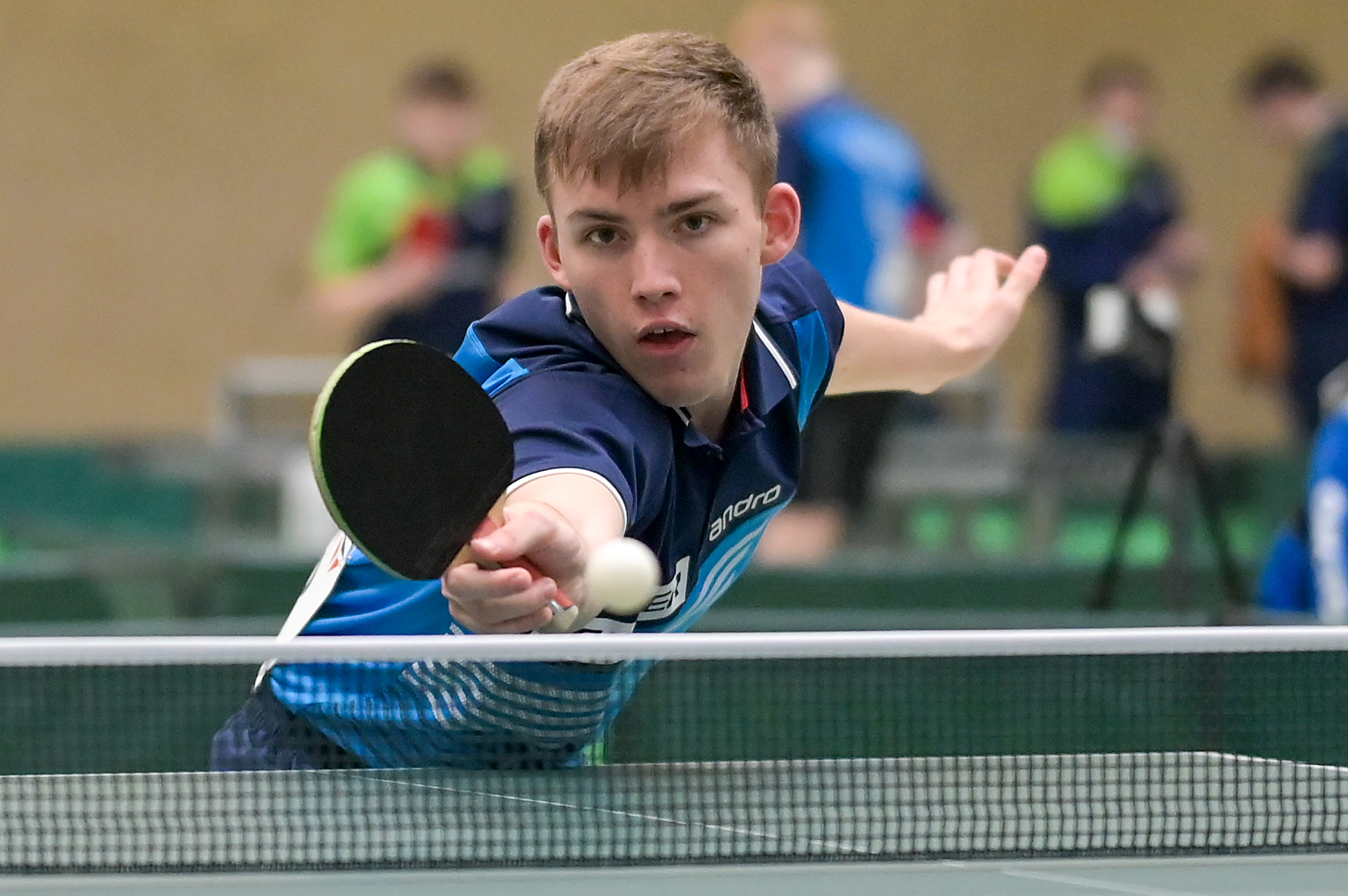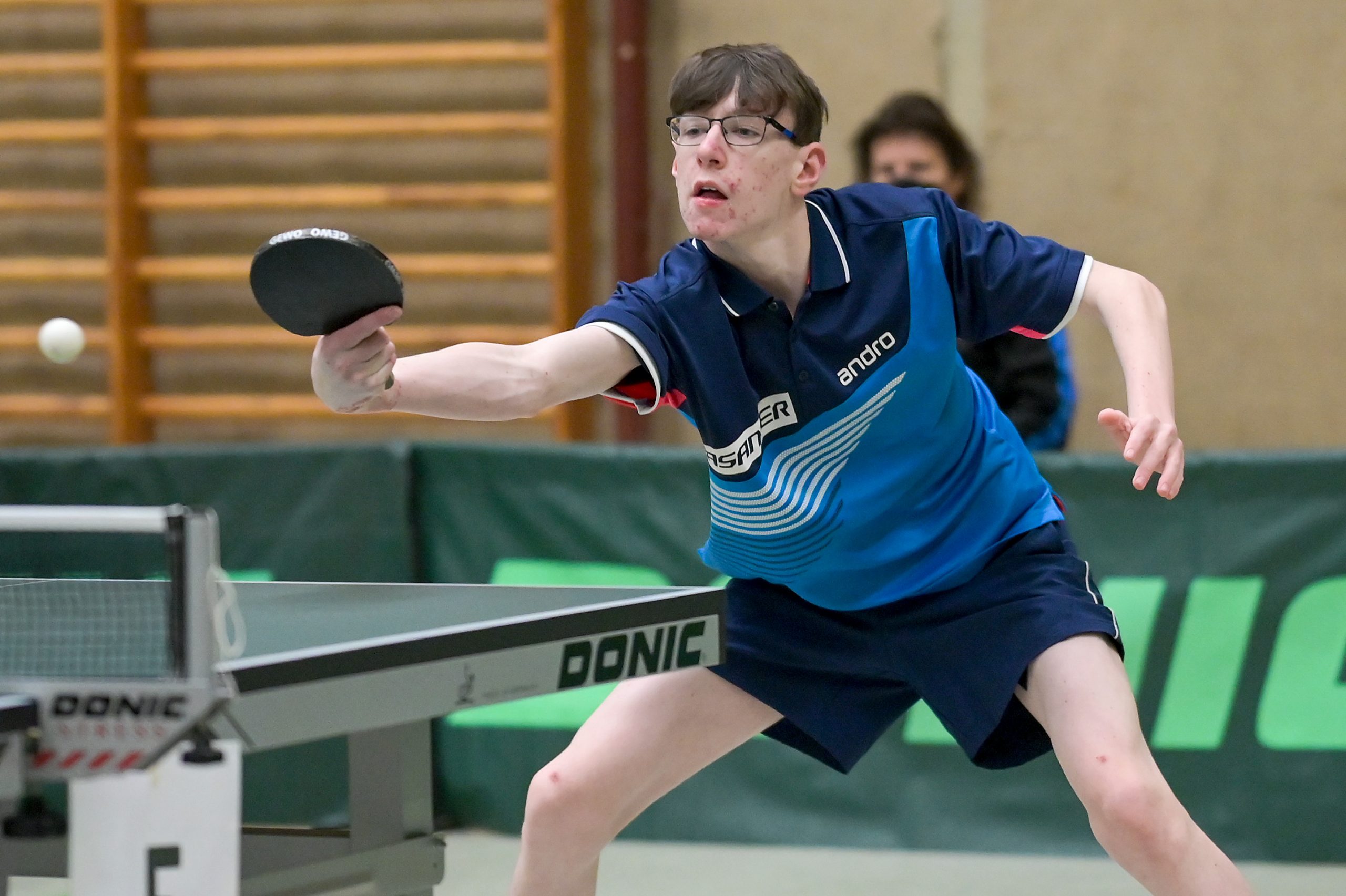 Bei den Jungen 18 belegte Andre Bertelsmeier mit einer souveränen 5:0-Bilanz in der Gruppe Platz eins. In der Ko-Runde ging es dann gegen Karl Zimmermann aus Sachsen um den Einzug ins Halbfinale. Hier musste sich Andre nach großem Kampf knapp mit 2:3 geschlagen geben. Durch das anschließende 3:0 gegen Felix Köhler (PTTV) holte er sich aber die Platzierung 5-8 und damit das Ticket zum Top 12. Ebenso wie Wim Verdonschot, der nach seinem dritten Platz in der Gruppe die beiden nächsten Partien gegen Itagaki (BYTTV) und Senkbeil (TTVN) gewinnen könnte.