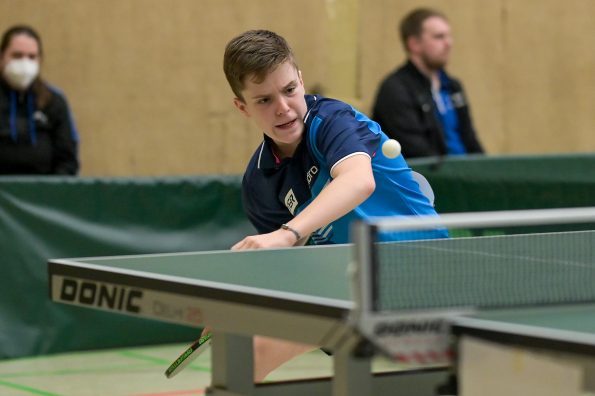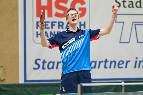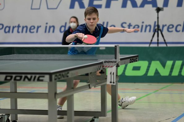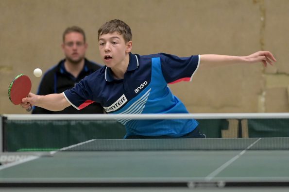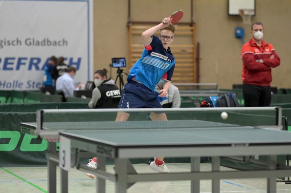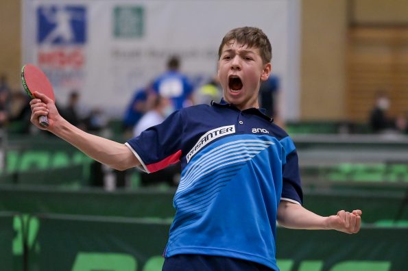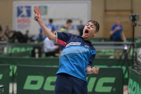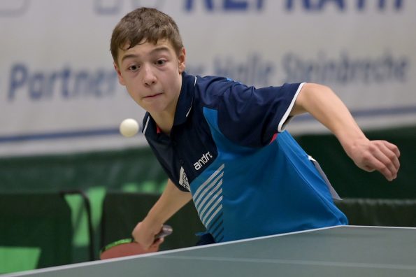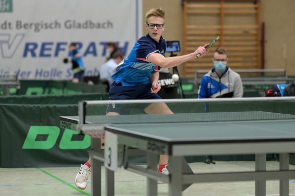Jamal Oudriss, Friedrich Kühn von Burgsdorff und Chris Andersen gewannen bei den Jungen 15 ihre Gruppen und spielten so am Sonntag um den Einzug ins Halbfinale. Leider mussten alle drei in der ersten Ko-Runde ihren Gegnern gratulieren, so dass wir hier ohne Medaille blieben. Friedrich sicherte sich aber durch den anschließenden deutlichen Sieg gegen Jager (HETTV) schnell die Qualifikation zum Top 12. Für Jamal und Chris lief es in der nächsten Runde nicht erfolgreich, so dass sie maximal noch Platz neun erreichen konnten. In den Platzierungsspielen trafen beide dann zu einem internen WTTV-Duell aufeinander, welches Jamal für sich entscheiden konnte. Durch den anschließenden Sieg gegen Kevin Fu aus Bayern holte der Refrather in seinem „Heimspiel“ noch Platz neun und kann sich damit berechtigte Hoffnungen auf einen Verfügungsplatz machen. Für Chris lief es im Anschluss leider nicht erfolgreich, was am Ende Platz 12 bedeutete.