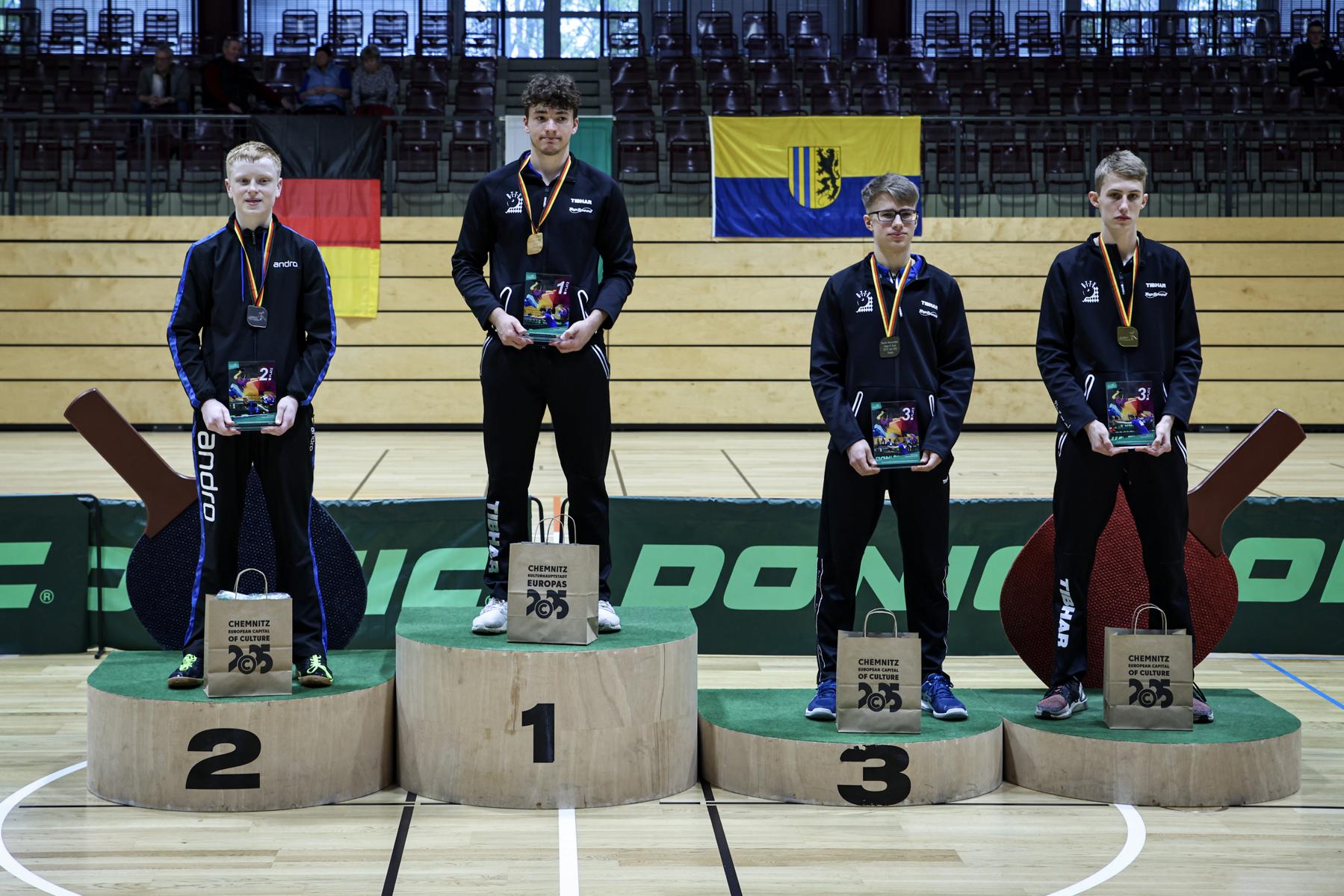 Andre Bertelsmeier wurde seiner Favoritenrolle in den Gruppenspielen gerecht, gab hier lediglich einen Satz ab und qualifizierte sich so mit drei Siegen direkt für das Achtelfinale. Auch hier ließ er nichts anbrennen und siegte deutlich mit 4:0 gegen Maximilian Dreher aus Bayern. Im Viertelfinale bot Andre wieder eine souveräne Vorstellung, gab lediglich einen Satz ab und zog mit einem 4:1-Sieg über Kevin Matthias (TTVN) ins Halbfinale ein.
