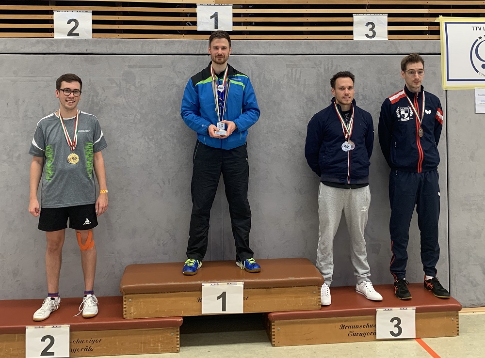 Auch Christian Reichelt (SV Brackwede/NRW-Liga) erreichte ohne Satzverlust die Hauptrunde. Hier setzte er sich im ersten Spiel mit 3:0 (0, 6, 4) gegen Kevin Kösling (TuS Bad Driburg) durch. Im Viertelfinale konnte er sich mit 3:0 (3, 3, 3) gegen Robin Köhne (TuS Bardüttingdorf-Wallenbrück/VL) durchsetzen. Im Halbfinale dann das Spiel gegen Nico Bohlmann, gegen den er in einem abwechslungsreichen Spiel zuerst mit 0:2 (-9, -12) zurücklag, sich aber dann die Sätze 3 + 4 (9,9) zum 2:2 Zwischenstand sicherte. Doch dann konnte Bohlmann den entscheidenden 5. Satz mit 11:9 für sich entscheiden. 3. Platz für Reichelt!