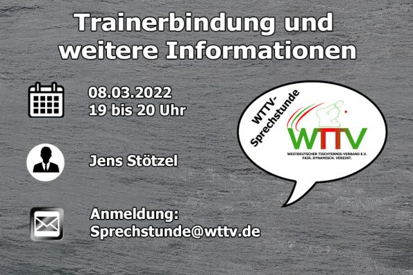 Am 08. März geht es um 19 Uhr weiter mit einer WTTV-Sprechstunde zum Thema Trainerbindung und weitere Informationen zur Trainer-Aus- und Fortbildung.