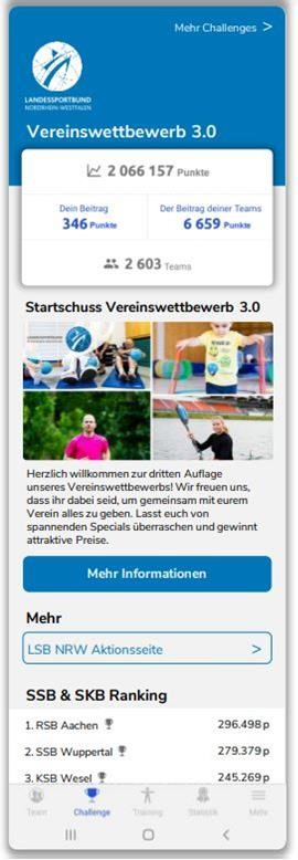 Die Corona-Pandemie hat uns auch in diesem Winter fest im Griff und beeinflusst unseren Alltag. Auch der Sport ist erneut unterschiedlich eingeschränkt oder aber Vereinsmitglieder trauen sich nicht in der Gruppe Sport zu treiben. Wir halten jedoch an unserem Motto #trotzdemSPORT fest! Der Vereinswettbewerb NRW geht in die 3. Runde. Der LSB NRW vergibt Preisgelder in Höhe von 8.000 Euro, womit der Vereinswettbewerb seine Attraktivität beibehält. Die Teamfit-App ist in der Zwischenzeit weiterentwickelt, sodass z.B. zahlreiche Sportarten über ein Punktesystem abgebildet werden und Smartwatches mit der App gekoppelt werden können. Ebenso erhalten wir für den Vereinswettbewerb 3.0 einen eigenen Challenge-Bereich.