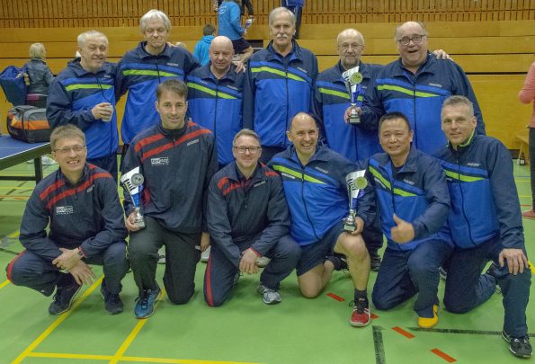 Der TTC Waldniel entsandte Guangjian Zhan, Michael Poos, Holger Quade und Klaus Taplick zu den Westdeutschen-Mannschaftsmeisterschaften beim TTC Vernich. Im ersten Spiel gegen die Mannschaft des TTSG Rietberg-Neuenkirchen gab es ein klares 4:0 bei 12:4 Sätzen. Auch im zweiten Gruppenspiel gegen die TTG Langenich gab sich das Trio keine Blöße und siegte erneut 4:0 (12:1). Durch die Halbfinalpartie gegen den TuS Bexterhausen marschierten die Waldnielern ebenso souverän. Durch ein 4:1 stand die Finalteilnahme fest. Dort aber warteten Spitzenspieler des TTC Schwalbe Bergneustadt, die vom Papier her eigentlich klar favorisiert waren: In Vladislav Broda (Deutscher Einzelmeister 1994) und Sandor Jankovic (mit Borussia Düsseldorf 1990 Deutscher Mannschaftsmeister) standen zwei starke Spieler im Team. Dritter Mann war Andreas Grothe. Der Respekt war groß, und dennoch setzten sich die Waldnieler durch. Das 4:208 brachte den Titel – und das Ticket zur Deutschen Meisterschaft der Senioren, die am 2./3. Juni 2018 in Langenselbold (Hessen) stattfindet.