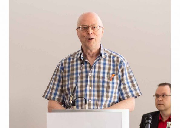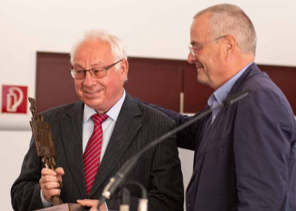 Böhne stellte in seiner Rede die langjährigen und vielfältigen Verdienste seines Kollegen und Freundes Helmut Joosten heraus. Damit war die Katze aus dem Sack: Neuer Träger der höchsten Auszeichnung des Verbandes war der zunächst völlig ahnungslose aktuelle Präsident. Dafür hatten in eigener Initiative seine Kollegen im Präsidium (diesmal ohne ihren „Chef“) gesorgt…