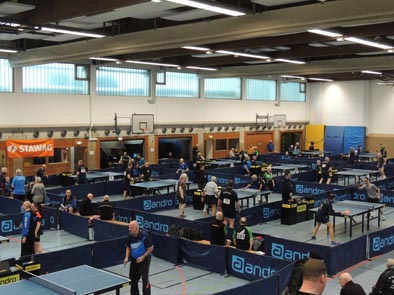 Mit den Gruppenspielen der Senioren und Seniorinnen „Ü40“ haben am Samstagmorgen (7. Dezember) um 9 Uhr die Westdeutschen Tischtennis-Seniorenmeisterschaften in Aachen begonnen. Etwa 300 Qualifizierte der rund 25.000 Spielberechtigten im Westdeutschen Tischtennis-Verband (WTTV) treten an diesem Wochenende gegeneinander an. Ausrichter ist der SV Sportfreunde Hörn, Austragungsort die Mehrfachsporthalle in Aachen-Laurensberg im Hander Weg 89. Aachens Oberbürgermeister Marcel Philipp (links im Bild, Mitte Christian König, rechts Ferdi Wallies) sprach sich in einem Grußwort dafür aus, dass auch Sportarten abseits vom Fußball eine stärkere Berücksichtigung in der Medienberichterstattung finden sollten. Ferdi Wallies, Vorsitzender des WTTV-Bezirks Mittelrhein, dankte den Sportfreunden Hörn und den zahlreichen ehrenamtlichen Helfern für ihr Engagement. Die Meisterschaften gingen am Sonntagabend (8. Dezember) zu Ende. Die beiden Endspielteilnehmer/innen haben sich für die Deutschen Meisterschaften im kommenden Jahr in Dillingen/Baden-Württemberg qualifiziert.