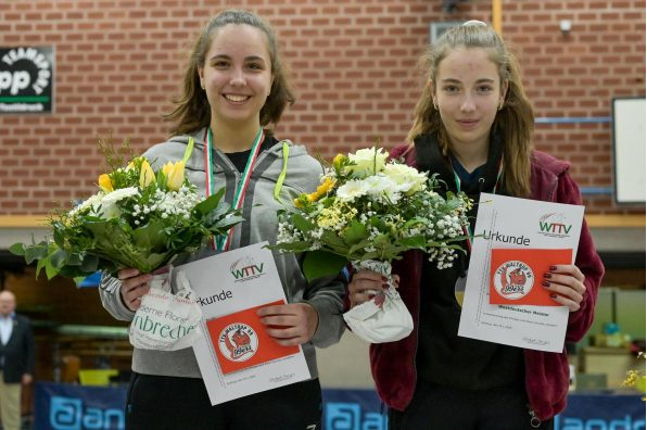 Bei den Westdeutschen Einzelmeisterschaften in Waltrop standen zweimal die Mittelrheiner ganz oben auf dem Treppchen: Im Herren-Einzel setzte sich Dennis Klein (TTC indeland Jülich) in einem hochklassigen Finale gegen den Titelverteidiger Erik Bottroff (Borussia Dortmund) mit 4:2 (14,-10, 8, 8, -9, 6) durch. Gianluca Walther (1. FC Köln) wurde Dritter und zusammen mit Robin Malessa Vizemeister im Doppel – hier holten sich zudem die beiden Kölner Björn Helbing und Philipp Gärtner die Bronzemedaille. Besonders erfreulich, da nicht erwartet, ist der Titelgewinn von Charlotte und Hannah Schönau (TTC GW Fritzdorf/TTF Kreuzau), die im Finale über Yuki Tsutsui/Verena Duhr (TuS Bad Driburg/SC Bayer 05 Uerdingen) mit 3:1 (8, 10, -2, 8) die Oberhand behielten.