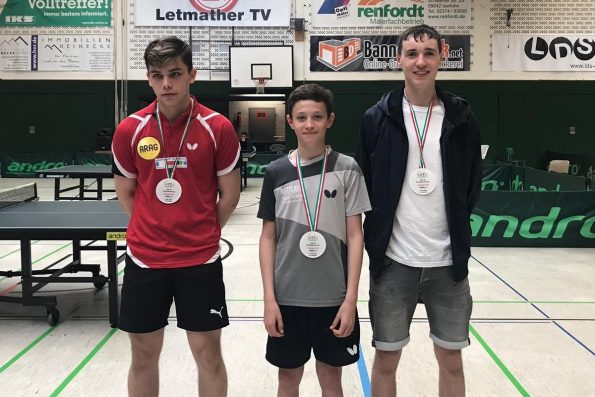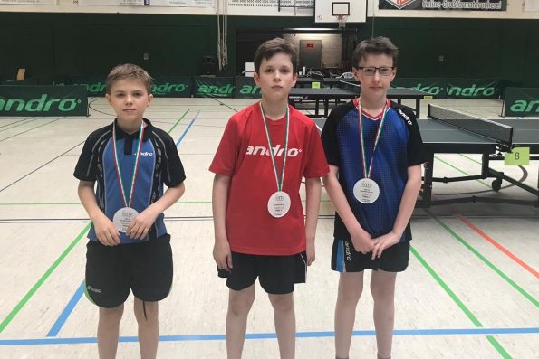 Lennart Wimmers, der in der Vorrunde seine Gruppe mit 3:0 Spielen souverän gewinnen konnte, musste gleich in der ersten Platzierungsrunde eine knappe Situation überstehen, in der er gegen Jan Gantevoort (TTC Unterbruch) erst im Entscheidungssatz zu neun gewinnen konnte. Dieser Sieg gab ihm allerdings Selbstvertrauen, so dass Lennart durch deutliche Siege gegen Tyson Tan Hasse (TTF Bönen) und An Duy Dang (TTC Lövenich) das Spiel um Platz eins erreichte. Hier traf er auf Jarne Weinitschke (SV DJK Holzbüttgen), der mehr Mühe hatte das Endspiel zu erreichen. Denn sowohl im Viertelfinale gegen Linus Ripploh (1.FC Gievenbeck) als auch im Halbfinale gegen Leon Viktora (Borussia Düsseldorf) musste Jarne über die volle Distanz gehen, konnte aber beide Entscheidungssätze relativ eindeutig mit 11:6 und 11:5 für sich entscheiden. Im Finale konnte er aber gegen einen an diesem Tag großartig aufspielenden Lennart Wimmers nichts ausrichten. Das Spiel um Platz drei gewann Leon dann sehr deutlich mit 3:0 gegen An Duy.