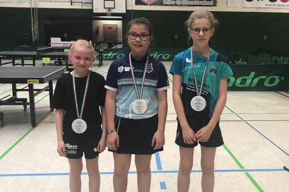 Bei den Mädchen 18 erreichten Sarah Löher (TTV Hövelhof), Leonie Humme (DJK BW Annen), Frederike Starp (DJK VfL Billerbeck) und Michelle Wulff (DJK SR Cappeln) durch ihre Gruppensiege in der Vorrunde die Platzierungsspiele 1-4. Leonie und Fredericke hatte hier etwas mehr Mühe und konnten sich nur aufgrund des besseren Satzverhältnisses gegen Annika Meens (Anrather TK) und Angelika Wulff (DJK SR Cappeln) hauchdünn durchsetzen. In der Endrunde zeigte Michelle dann, dass sie an diesem Tag eindeutig die stärkste Spielerin in der Halle war, denn sie konnte alle Spiele souverän mit 3:0 gewinnen. Platz zwei holte sich Sarah mit einer Spielbilanz von 2:1 vor Leonie, die die Endrunde mit 1:2-Spielen abschloss.
