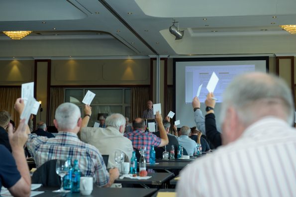Präsident Helmut Joosten moderierte anschließend die Anträge auf Änderungen der Satzung. Für den Bereich der Wettspielordnung übernahm dieses wie gewohnt Werner Almesberger (Oberhausen), der in bewährter, souveräner Weise den Delegierten die beantragten Änderungen erläuterte und das jeweilige Mehrheitsbild per Abstimmung erfragte.