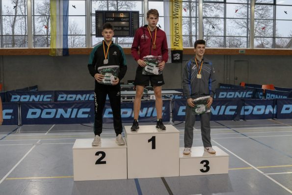 Mit 5:0 Spielen und 15:2 Sätzen gewann Tom Mykietyn seine Gruppe sehr souverän und erspielte sich so eine gute Ausgangsposition für die Endrunde. In der ersten Runde traf er auf Daniel Rinderer (BYTTV), den er in einem engen und hochklassigen 5-Satz Match niederringen konnte. Dabei holte er nicht nur einen 1:2 Satzrückstand auf, sondern wehrte im fünften Satz, beim Stand von 8:10 noch 2 Matchbälle ab. Anschließend konnte er mit 12:10 den Halbfinaleinzug perfekt machen. Nach einem deutlichen Halbfinale gegen Heye Koepke (TTVN) sollte es gegen Kirill Fadeev (HTTV) wieder ein knappes Spiel geben. Nach einem furiosen Start (8:0) konnte er den ersten Satz mit 11:4 gewinnen. Einen der nächsten drei hart umkämpften Sätze konnte Tom sich noch sichern, sodass die Entscheidung im letzten Satz fallen musste. Hier hatte Kirill Fadeev allerdings die besseren Nerven und konnte den Satz deutlich mit 11:3 gewinnen.